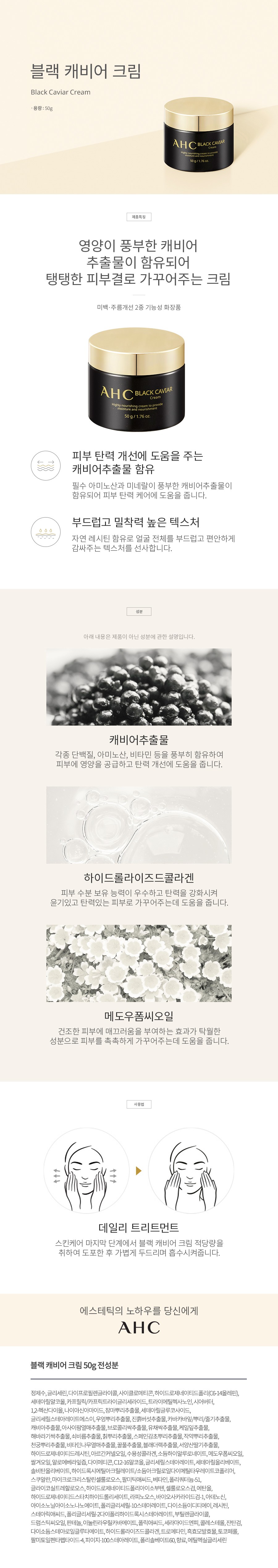Elevate your daily skincare routine with the AHC Black Caviar Cream. After cleansing, toning, and applying your favorite serum, scoop an appropriate amount onto your fingertips. Gently apply the cream evenly across your face and neck, massaging in soft, upward motions until fully absorbed. For optimal results and a truly radiant glow, incorporate this luxurious cream into both your morning and evening routines.