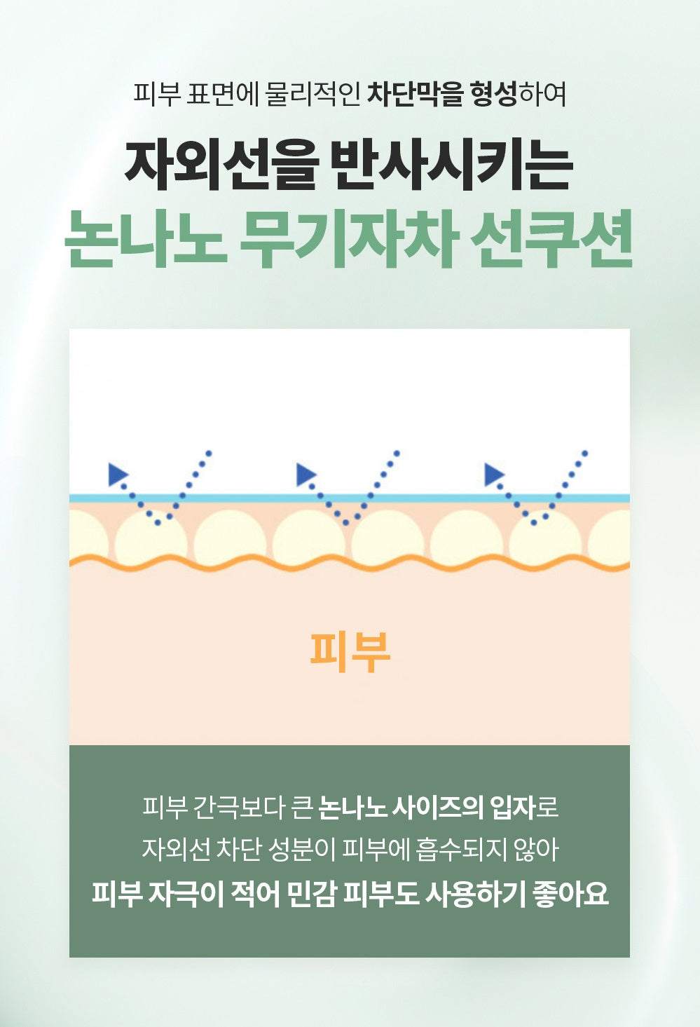 Non-nano inorganic UV protection sun cushion that reflects UV rays by forming a physical barrier on the skin surface