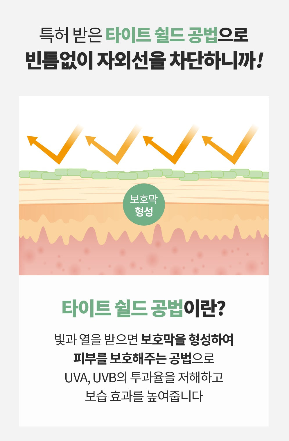 A method that protects the skin by forming a protective film when exposed to light and heat, inhibits UVA and UVB transmittance and enhances moisturizing effect.