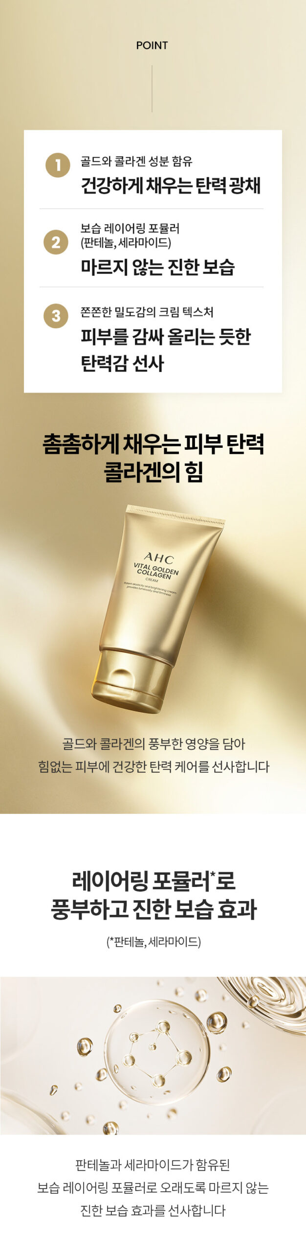 - Provides firm skin with rich nutrition of Gold + Collagen : The rich nutrients of gold and collagen are efficiently absorbed into the skin to help make the skin firm.