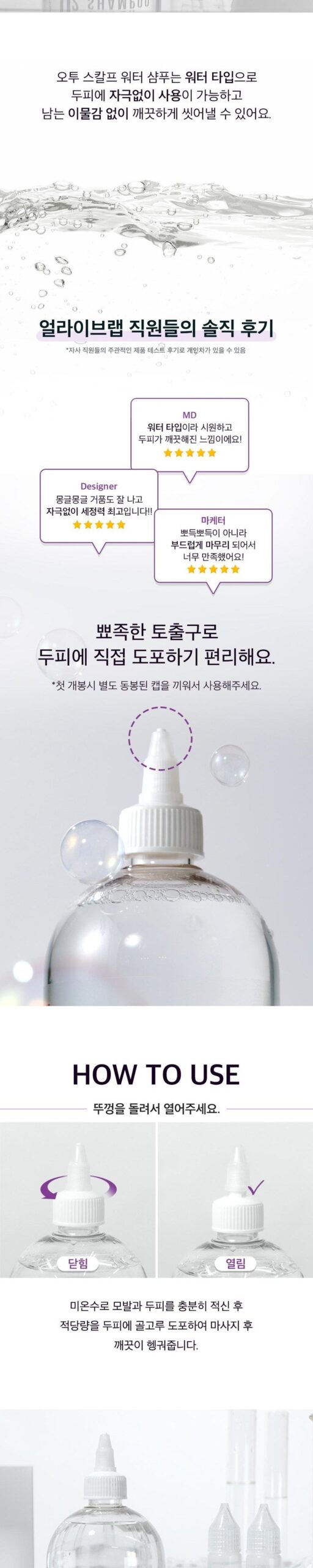 Ever since I started using the ALIVE:LAB O2 Scalp Water Shampoo, my itchy scalp feels calmer. The hydration it provides is truly remarkable for maintaining healthy hair.