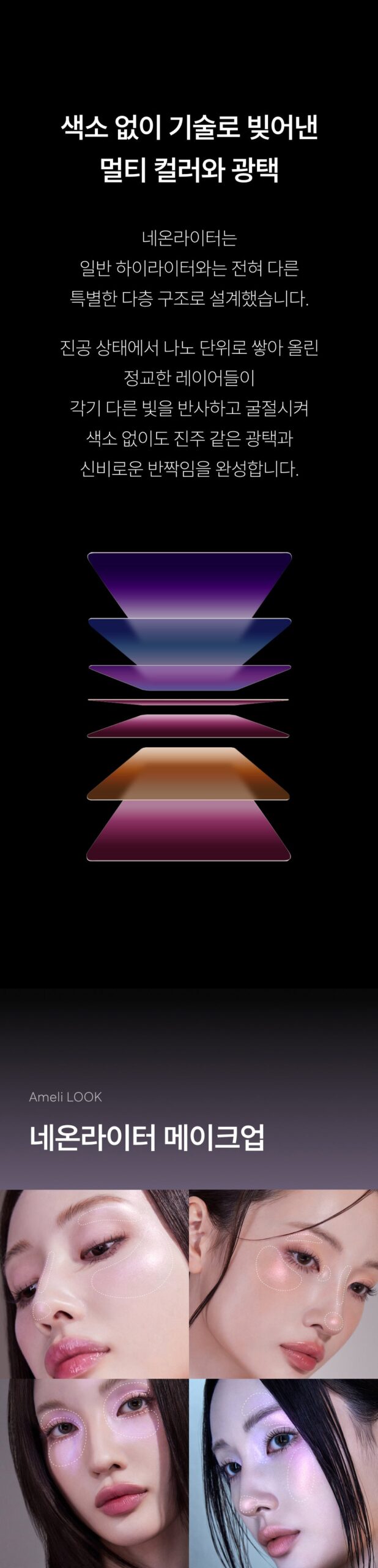The Neonlighter’s smooth and delicate texture ensures seamless application, letting you fully embrace the sparkle of light. Its unique multi-layer structure guarantees a radiant glow from every angle, making it the ultimate tool for versatile, customizable looks.