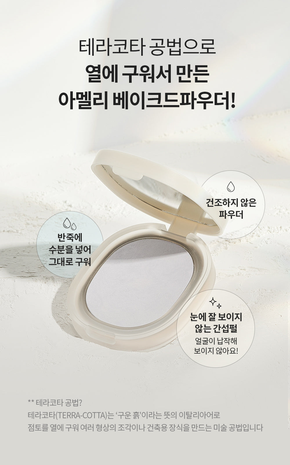 Experience the unique benefits of Ameli Baked Powder, crafted using the Terra-Corra method. Unlike typical pressed or loose powders, this baked powder is produced through a special baking process.