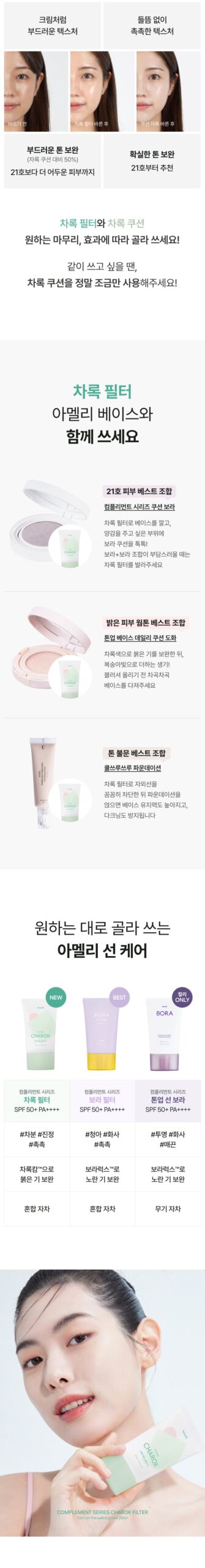 Initially, I was hesitant about trying Ameli’s Complement Series Filter Charok. My usual fear with products marketed as ‘multi-functional’ is the promise that often falls flat. However, this sunscreen + makeup base transformed my routine! It brilliantly calms redness with its soothing green tint; just a tiny amount felt barely there but delivered seamless coverage all day long—even under harsh summer sunlight here in Chicago. No heavy cakiness whatsoever! After embracing it for several weeks, it’s now an essential part of my regimen—both protecting and perfecting without irritation or worry about unsightly patches on outings.
