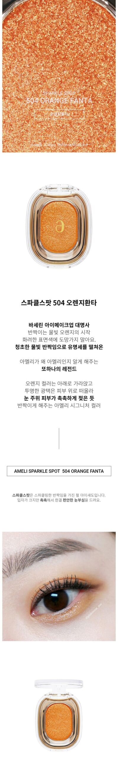 As a lifelong devotee of sparkling makeup, I was swept away by the luminous finish of Ameli Sparkle Spot 504 in Orange Fanta. Picture sunlit waters glinting off waves—this product brings that image to life! Unlike standard metallic shades that fade or crease, its special porous formulation remains true all day long while nourishing my lids with unparalleled comfort. While I’ve appreciated brands like Urban Decay for their palettes, none match this show-stopping brilliance and soft texture reminiscent of Dewey Santorini beaches when light hits just right; it’s simply delightful on city streets alike.