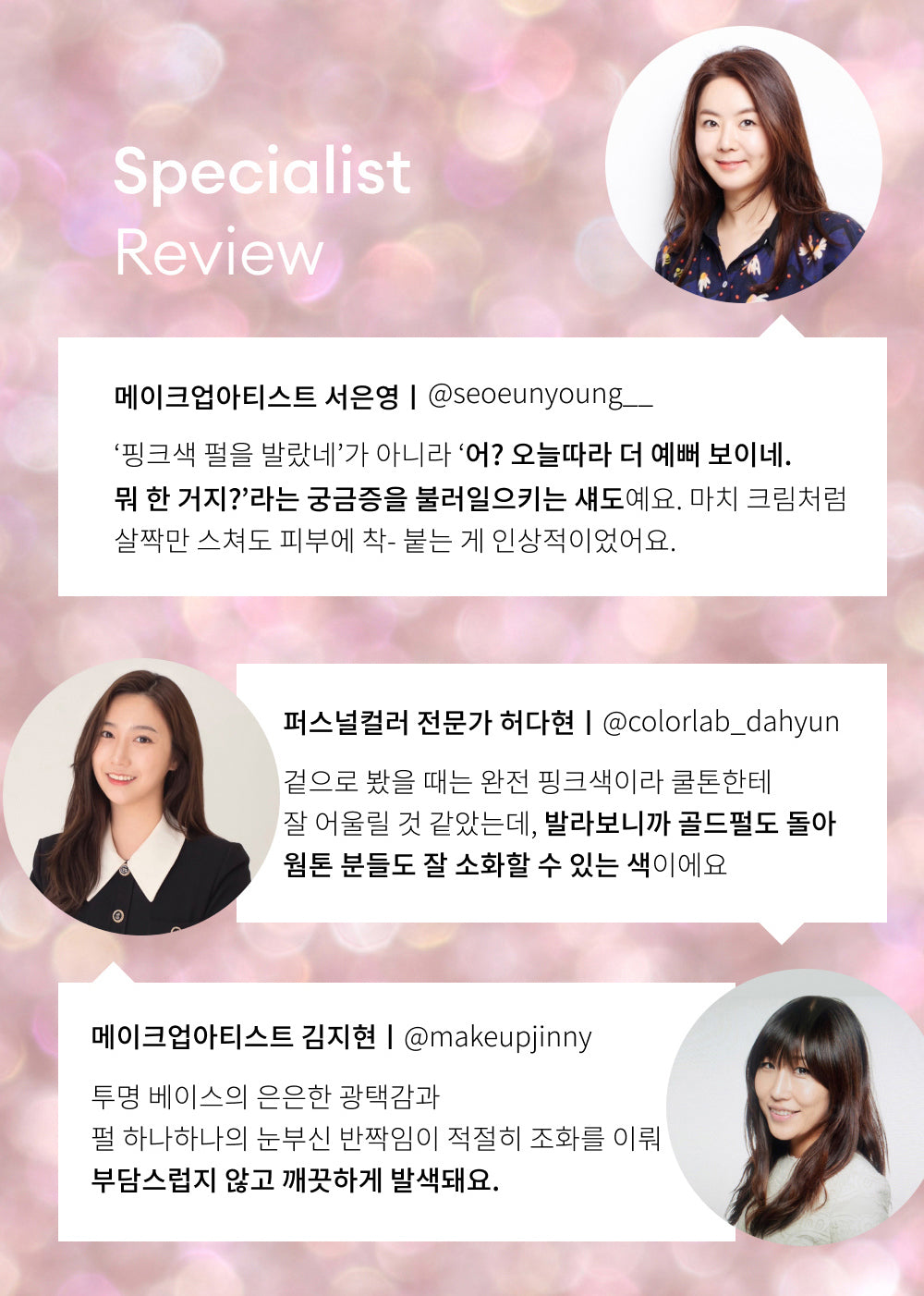 👩🎨 Makeup Artist, Seo Eun-young – “Instead of just looking like ‘pink shimmer,’ it makes people wonder, ‘Why do you look extra gorgeous today?’ It melts into the skin like a dream!”