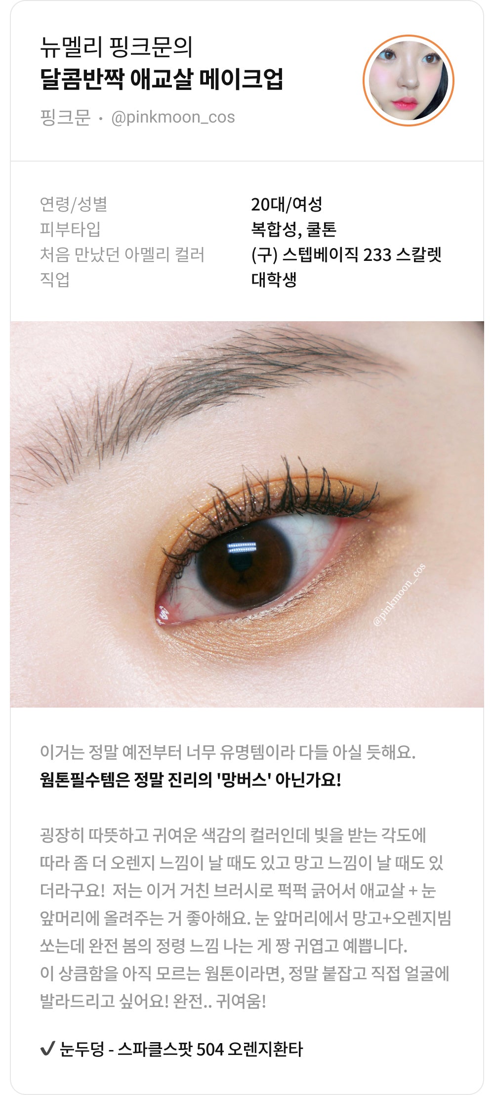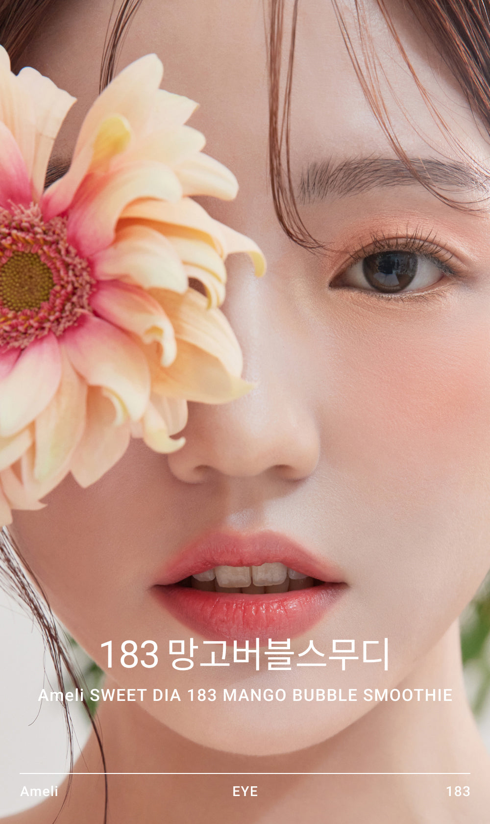 まるで果物をそのままかじったような鮮やかな色合い。このアメリー・スウィートディアのマンゴーバブルスムージーは、柔らかな光とリラックス感が絶妙です。目元に軽快さをプラスしながらもナチュラル。