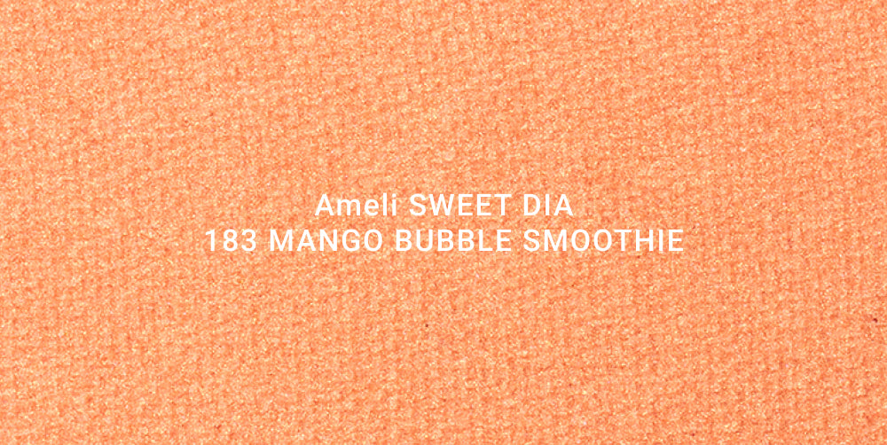 AMELI SWEET DIA 183 MANGO BUBBLE SMOOTHIE is the perfect mix of gold, peach, and soft orange, capturing the radiance of fresh mango foam blended with sunlight. This shimmering, multi-dimensional shade adds warmth and brightness without overpowering, making it an essential for both eyeshadow and blush.