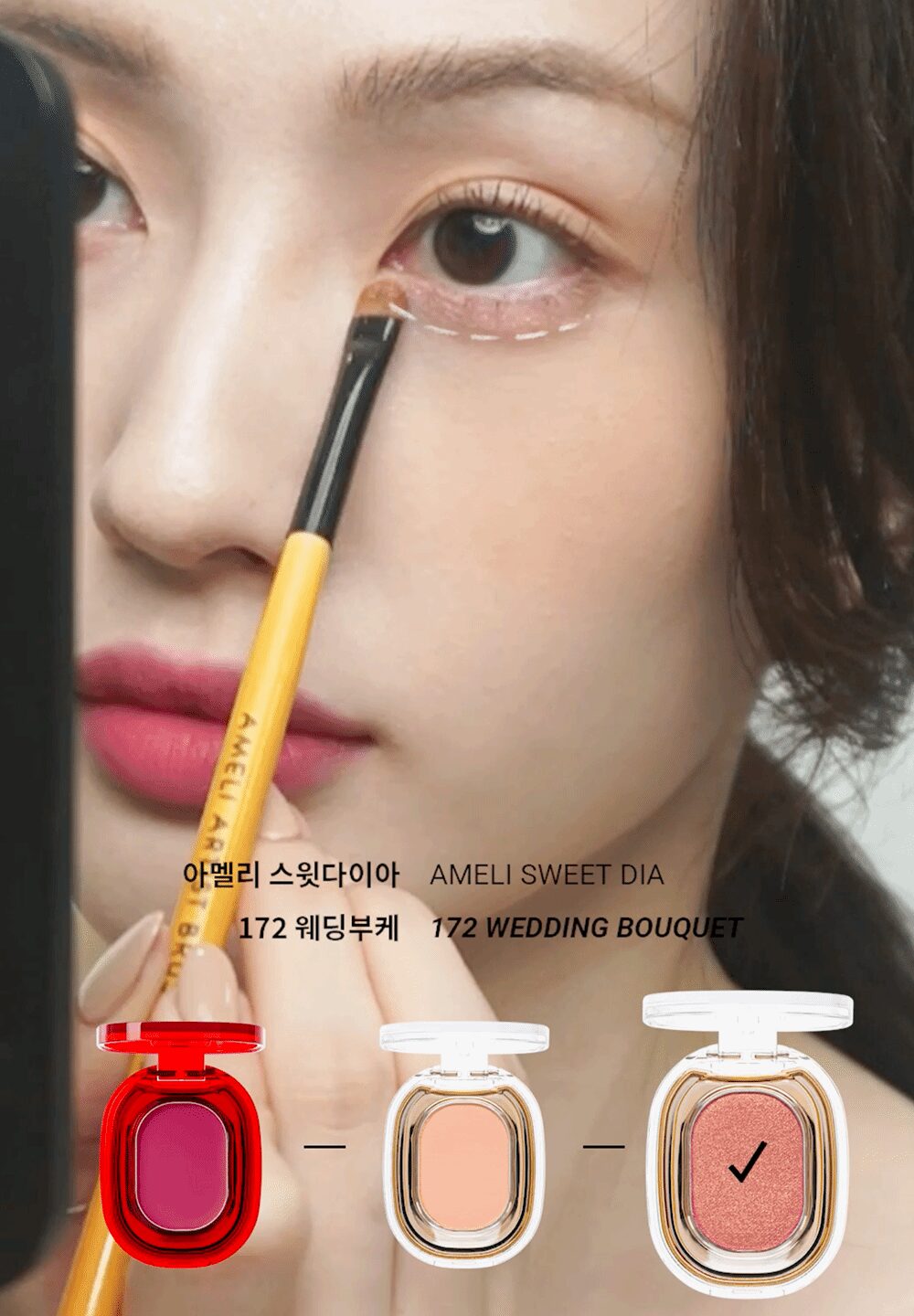 Two colors, elegant pink and delicate beige gold, create a luxurious atmosphere. It’s not overdone, but the color has a certain presence! I think it’s a good rose gold color to use even for people who are usually burdened with aegyosal makeup. If you need a color that will liven up and make you elegant, the 172 Wedding Bouquet!