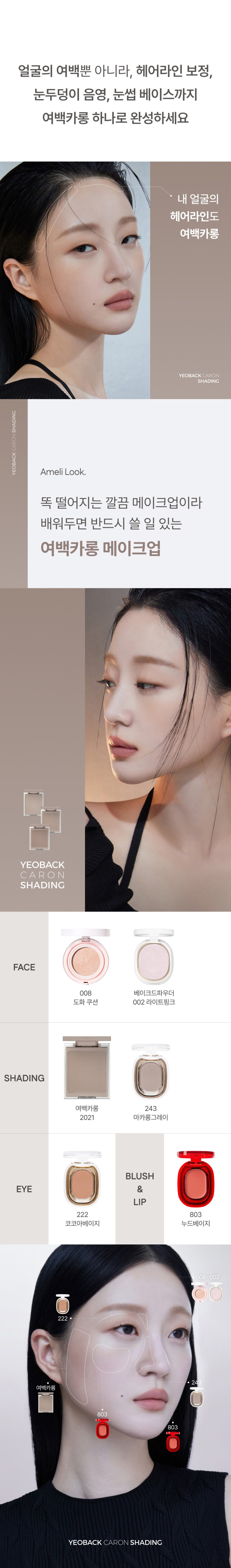 Transform your complexion with the AMELI Yeoback Caron Shading. Embrace natural definition, a slimmer appearance, and the confidence that comes with perfectly sculpted features. Add this K-beauty essential to your makeup routine today and redefine your beauty!