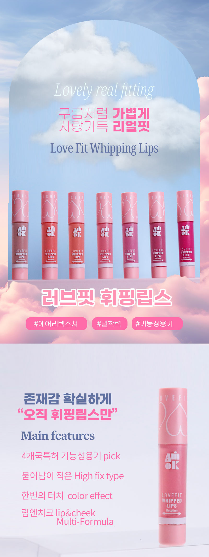 Discover your new obsession with the AMIOK Lovefit Whipping Lips, a luxurious lip tint that combines vibrant color with an irresistibly soft, whipped texture. Designed to deliver a flawless, comfortable pout, this 4g lip essential glides on smoothly, leaving your lips feeling pampered and looking absolutely stunning. Embrace a fresh, youthful glow with a shade that perfectly complements every skin tone.