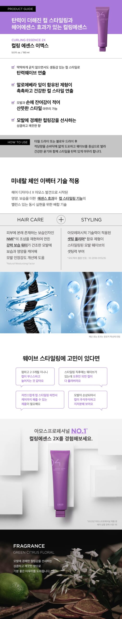 With a carefully crafted formula that combines styling polymers and nourishing ingredients, Amos Curling Essence 2X makes it easy to maintain beautiful, elastic curls while promoting healthy hair. Whether you need to revitalize post-perm curls or maintain a polished style, this essence delivers the perfect balance of care and styling.