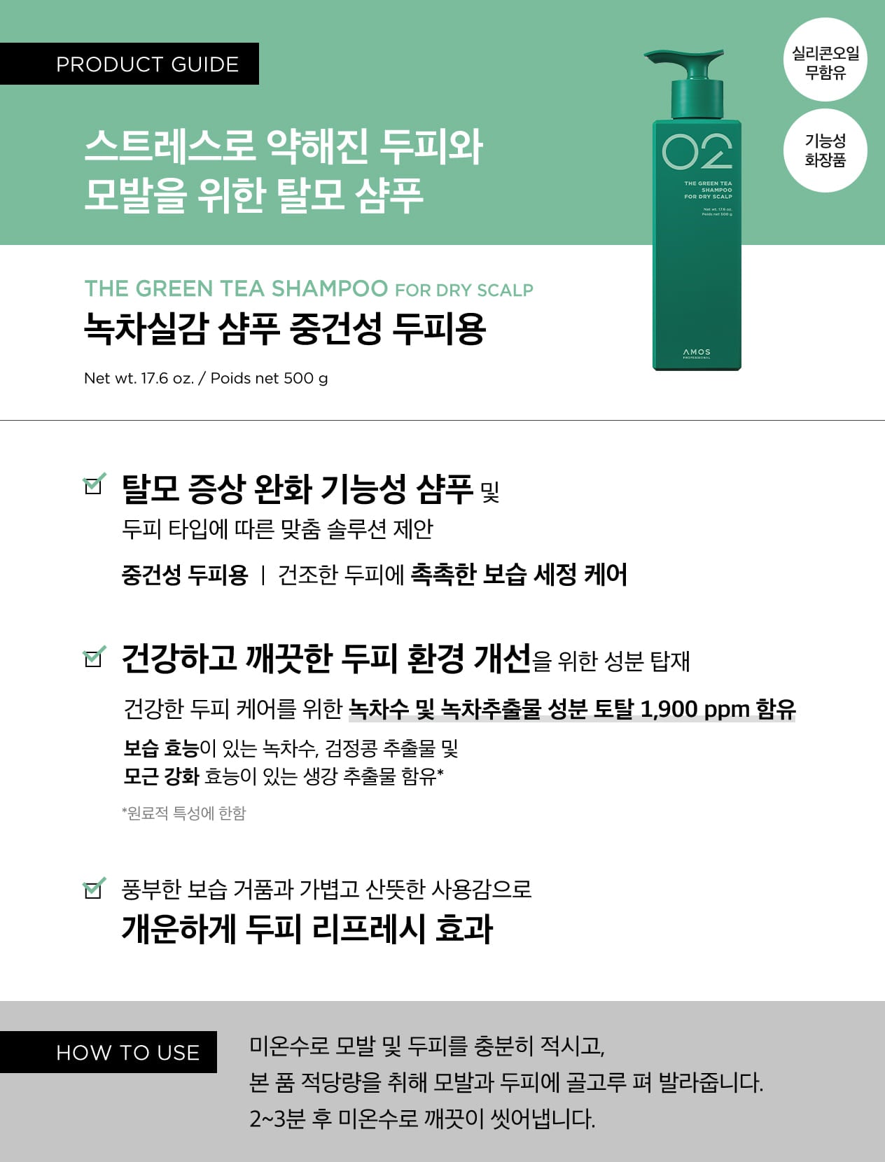 I recently tried the Amos Green Tea Shampoo for my dry scalp, and I am thoroughly impressed. The formula contains caffeine, which has noticeably strengthened my hair roots. After just a few washes, I’ve experienced less hair loss and a healthier look overall. What sets this shampoo apart is its unique Green Heriti™ extract derived from specially selected green tea leaves—my scalp feels refreshed without any irritation. This product offers a soothing hydration that keeps my scalp comfortable all day long.