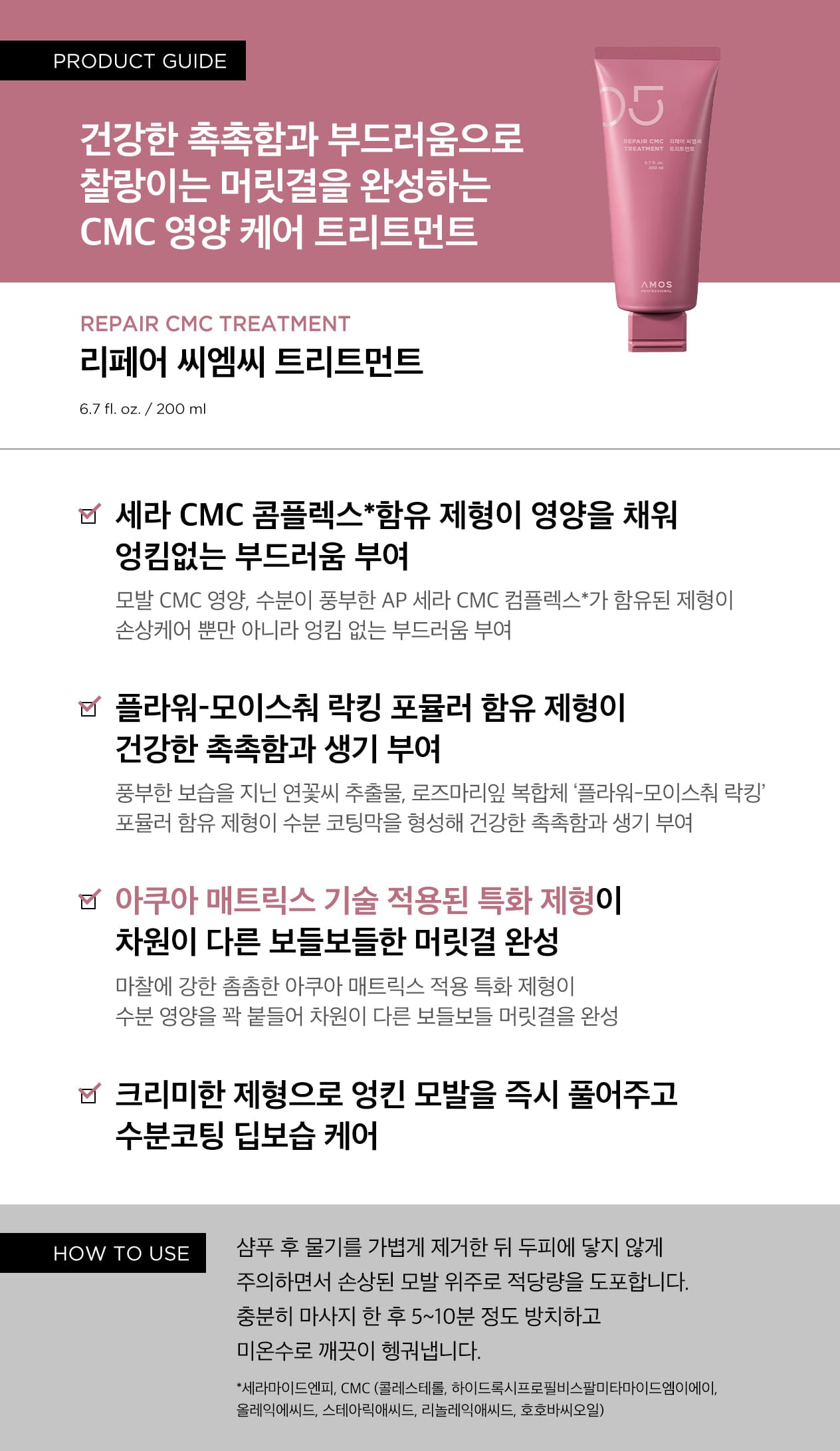 Formulated with AP Sera CMC Complex, rich in hair-replenishing nutrients, to restore hair structure and enhance softness.