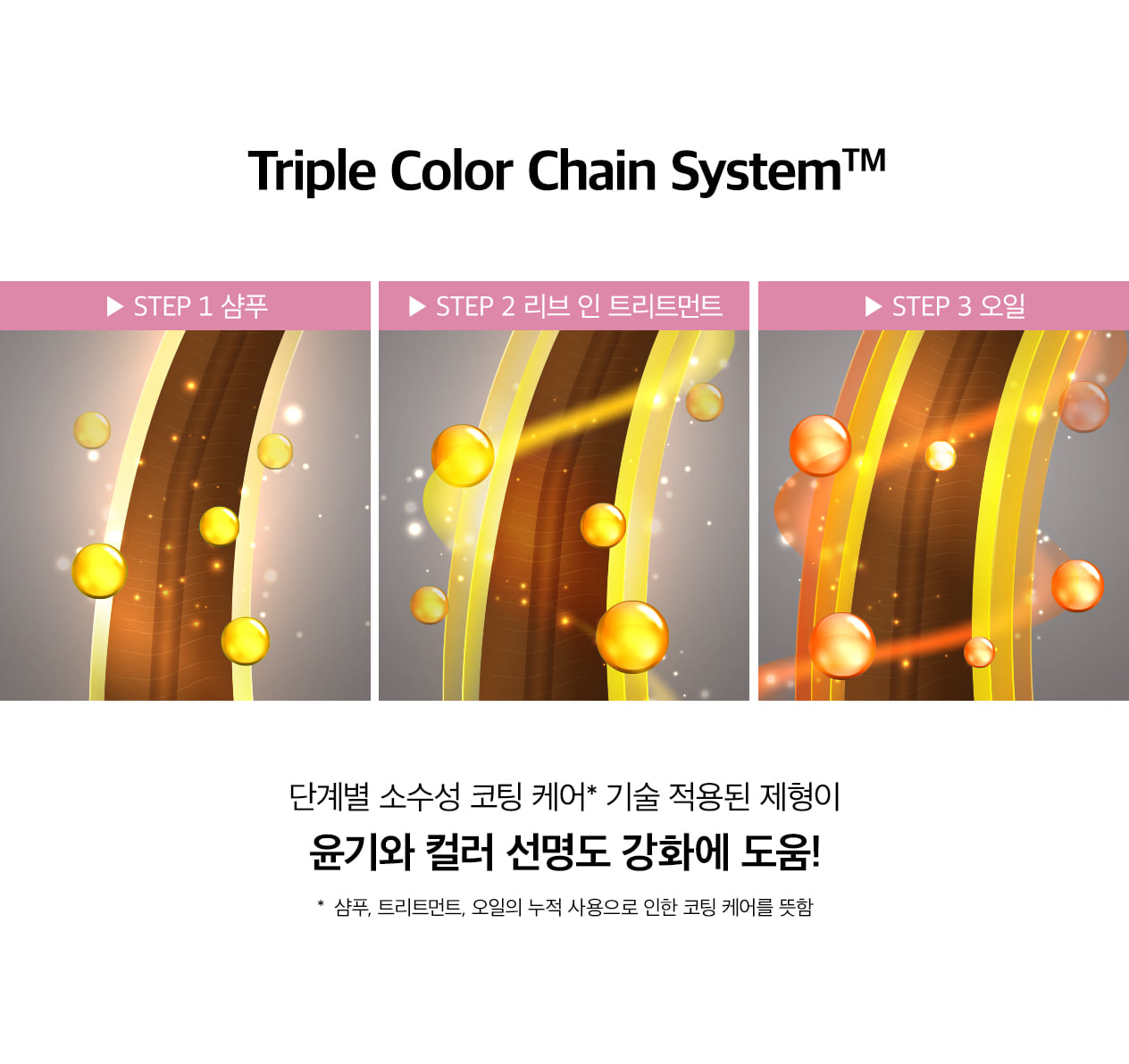 ✔ Hydrophobic Coating Care – A specialized coating system works with shampoo, treatment, and oil to boost shine and color clarity with every wash.