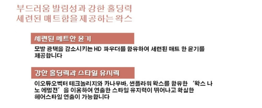 The Ioduo Vector Technology and a blend of carnauba wax and sunflower wax create a durable “wax nano-emulsion,” ensuring excellent styling power and long-lasting hold.