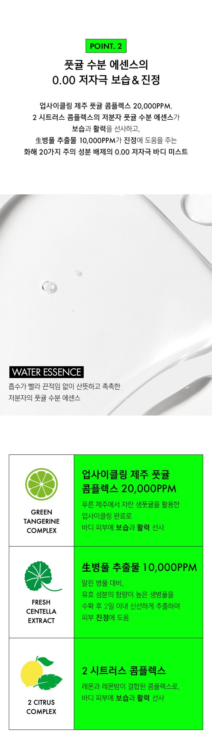 Upcycled Jeju Green Tangerine Complex (20,000PPM) made from fresh green tangerines grown in the green Jeju Island deeply moisturizes the skin and recharges energy, creating a dazzling, vibrant body skin full of vitality.* Obtained French Eve Vegan certification.
