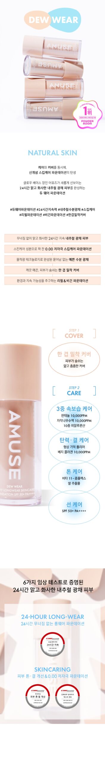 So, I tried the AMUSE Dew Wear Foundation and let me tell ya, the texture is something else. It’s super lightweight—like air on your skin! Once I spread it on my face, it felt like a soft caress rather than heavy makeup. The formula glided right over imperfections without clinging to dry patches; everything just looked smooth and seamless. It truly has this radiant finish that gives off a dewy glow but doesn’t make you feel greasy at all. Honestly feels hydrating too—almost like skincare in disguise! This one’s a winner for someone who’s after that natural look while still wanting coverage.