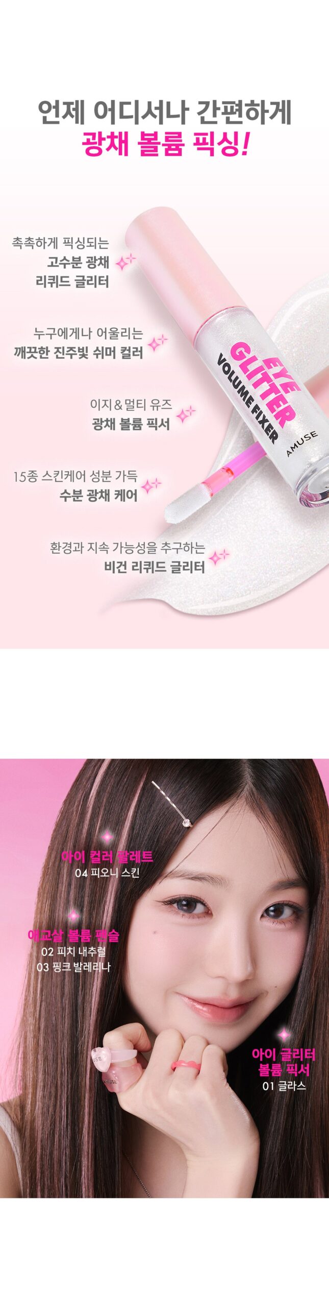 Illuminate your features with the AMUSE Eye Glitter Volume Fixer 01 Glass and enjoy a beautiful, radiant glow wherever you go!