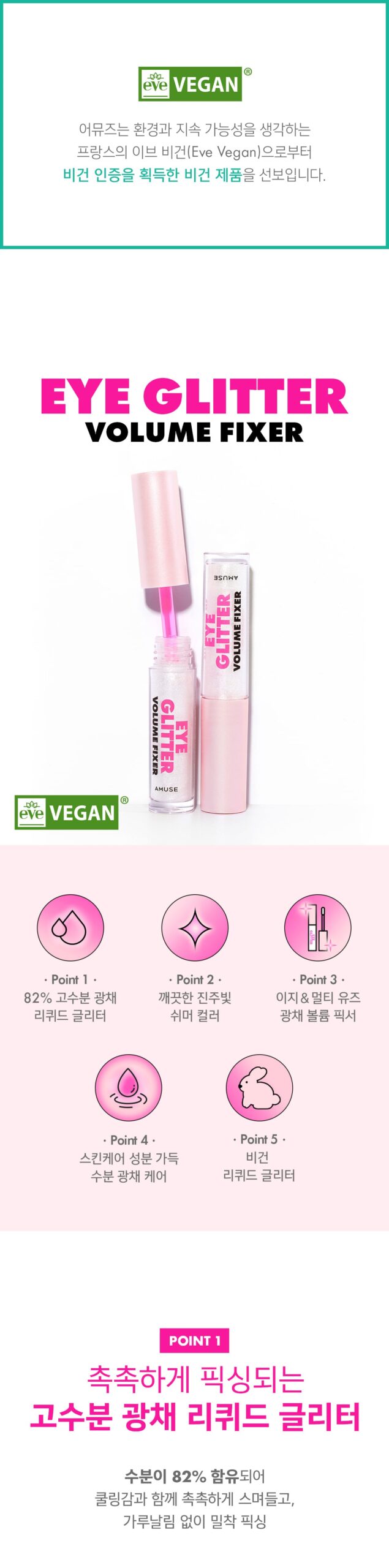 Okay, listen up! The AMUSE Eye Glitter Volume Fixer in shade Glass is pure magic. I’ve been trying to elevate my eye game lately for a big night out in Chicago, and this little gem just took it to another level. It’s got this stunning sparkle that doesn’t feel heavy at all – so light on the lids but looks fabulous! Totally love how vegan-friendly it is; everyone needs shine without guilt right? A couple of drops at the inner corners or over some smoky eyeliner — boom! Instant glam for your selfie-ready look.