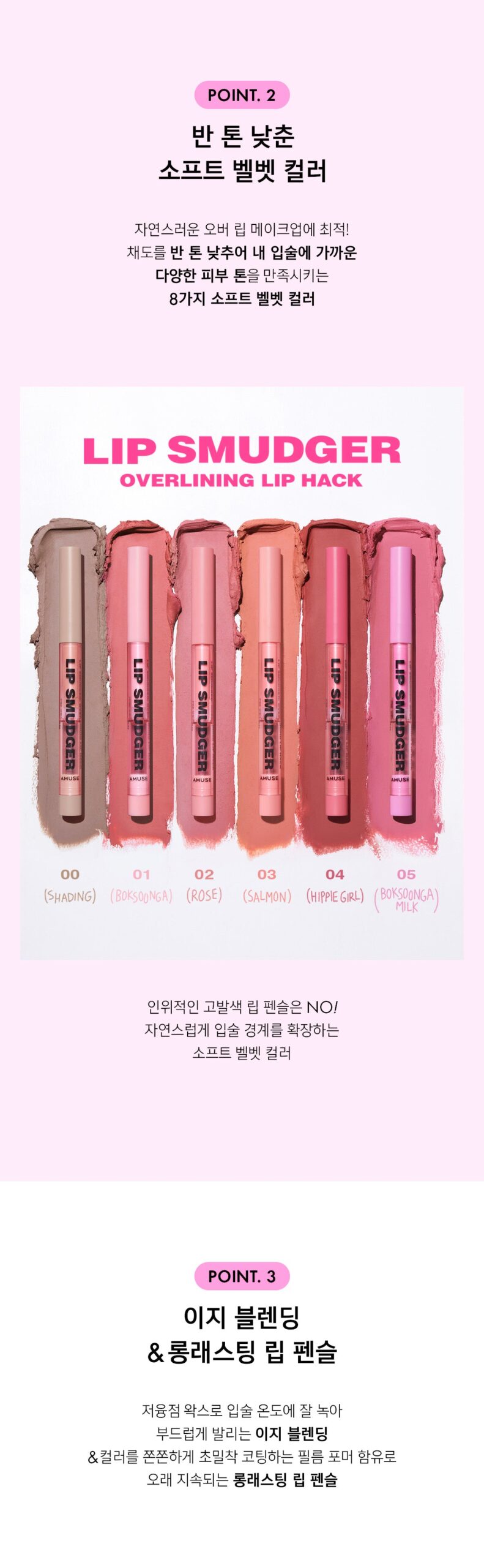 A long-lasting & smudging overlap lip pencil that applies smoothly and adheres tightly to overlips, natural shades, and even cheeks.