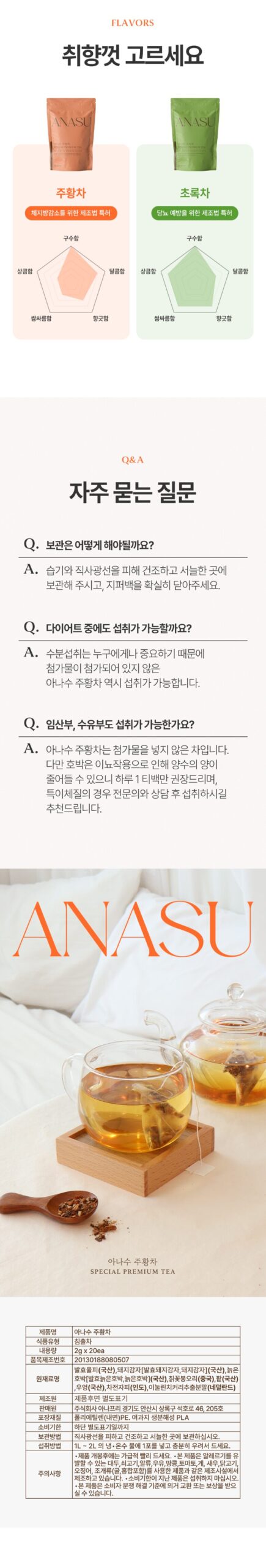 Enjoy ANASU Juwhang Tea for daily wellness and hydration—your perfect partner for a lighter, healthier lifestyle!