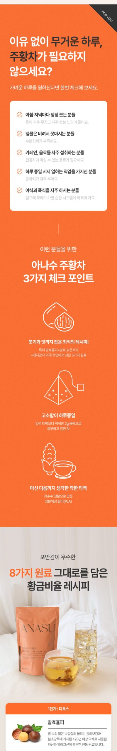 Enjoy ANASU Juwhang Tea for daily wellness and hydration—your perfect partner for a lighter, healthier lifestyle!