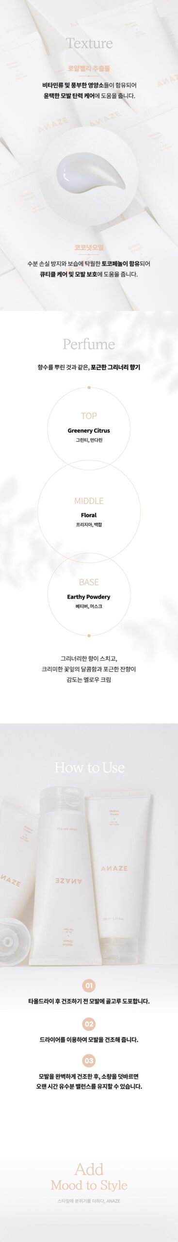 When I got the ANAZE Mellow Hair Cream, I was seriously impressed with how it looked right out of the box. The packaging is sleek and minimalistic, almost like a fancy product you’d see at an upscale salon in London or something. It feels sturdy too—like they really thought this through so that it wouldn’t just fall apart in your bag after one use. The lid snaps on tight, but not overly so; you can easily get into it without struggling while still keeping things secure if you decide to toss it in your travel kit. Honestly, unboxing felt kind of special! Plus, there’s no overwhelming scent which I’m all for since sometimes strong fragrances can give me a headache. You just know they’re focusing on quality here—not just what’s inside but also how it’s presented.