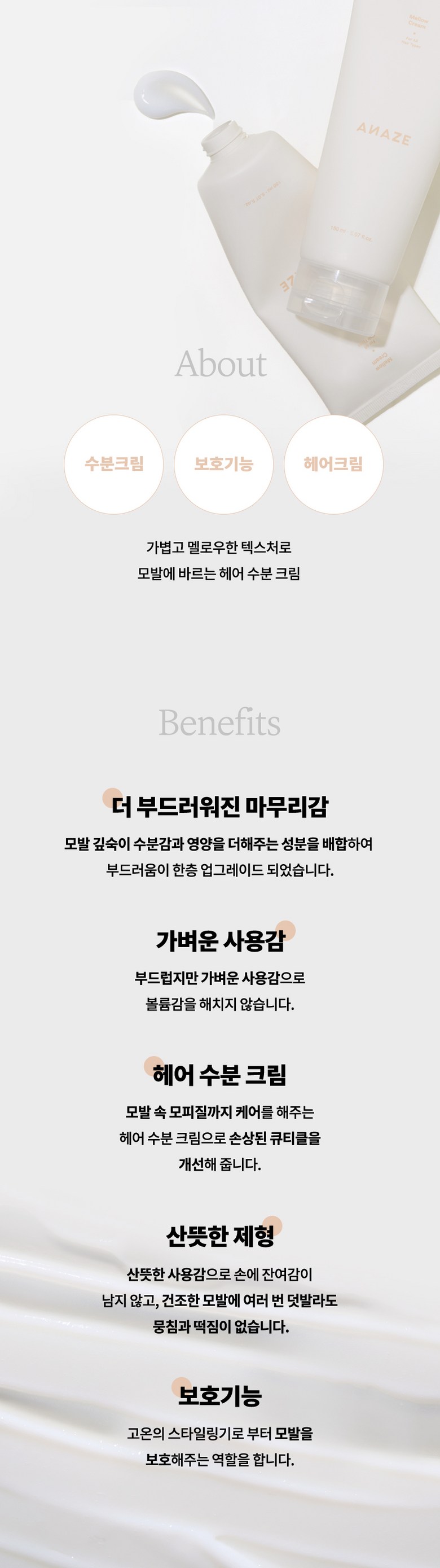 When I got the ANAZE Mellow Hair Cream, I was seriously impressed with how it looked right out of the box. The packaging is sleek and minimalistic, almost like a fancy product you’d see at an upscale salon in London or something. It feels sturdy too—like they really thought this through so that it wouldn’t just fall apart in your bag after one use. The lid snaps on tight, but not overly so; you can easily get into it without struggling while still keeping things secure if you decide to toss it in your travel kit. Honestly, unboxing felt kind of special! Plus, there’s no overwhelming scent which I’m all for since sometimes strong fragrances can give me a headache. You just know they’re focusing on quality here—not just what’s inside but also how it’s presented.