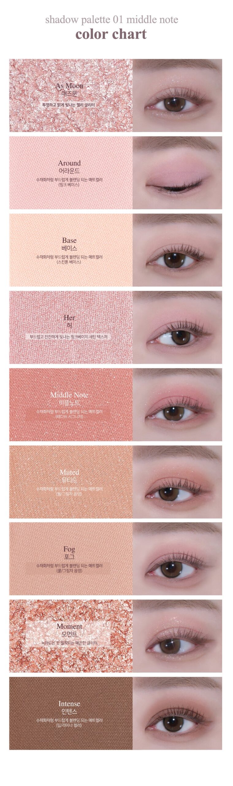 I’ve been using the and:ar Shadow Palette Middle Notes for a few weeks now, and I absolutely love it. The range of soft color combinations truly reflects the beauty of middle notes, making them perfect for any occasion. The inclusion of both warm and cool base colors provides an excellent foundation that allows me to mix and match effortlessly. I found the matte finish especially great during my daytime makeup routine; it stays put without fading throughout my busy day.