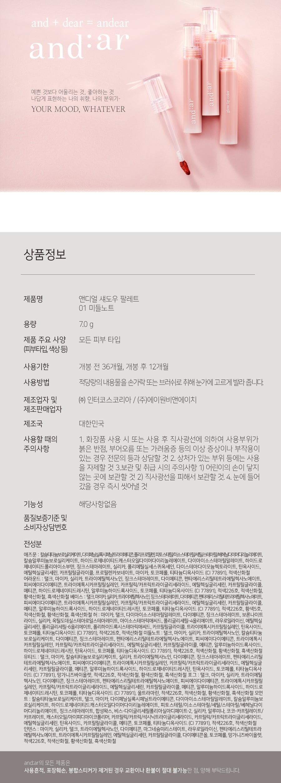 The and:ar Shadow Palette Middle Notes has truly transformed my makeup routine. The soft color combinations are stunning; I especially love the gentle mattes combined with the subtle pinks and corals, allowing for effortless blending. I found that the two base colors provide an ideal foundation—whether I’m going for a more natural daytime look or something elegant for evening outings, these shades adapt perfectly. They maintain their vibrancy throughout the day without fading, which is crucial in my busy schedule.