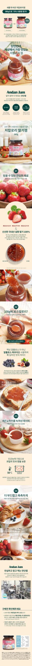 Andan Jam is a testament to purity and health. We meticulously select only the finest ingredients, eliminating any synthetic preservatives, colorings, or sweeteners. Our jam is crafted with 100% fresh, domestic Seolhyang strawberries, renowned for their exceptional taste and quality. Despite the absence of added sugar, which typically enhances the color of jams, Andan Jam embraces its unique old red hue, a hallmark of our commitment to natural and authentic flavors.