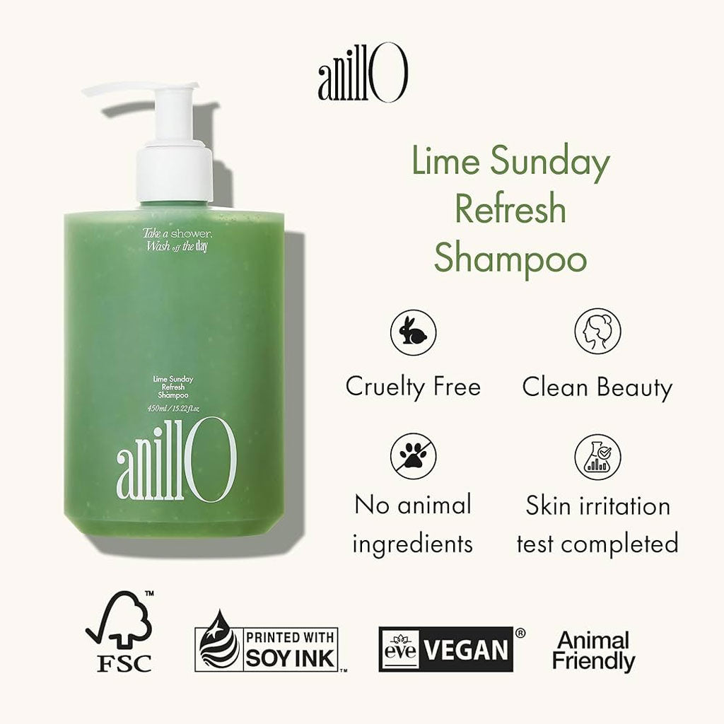 After a long week in the vibrant streets of Buenos Aires, I used Anillo Lime Sunday Refresh Shampoo. It transformed my oily roots and left me feeling fresh, like morning dew on lemon trees.