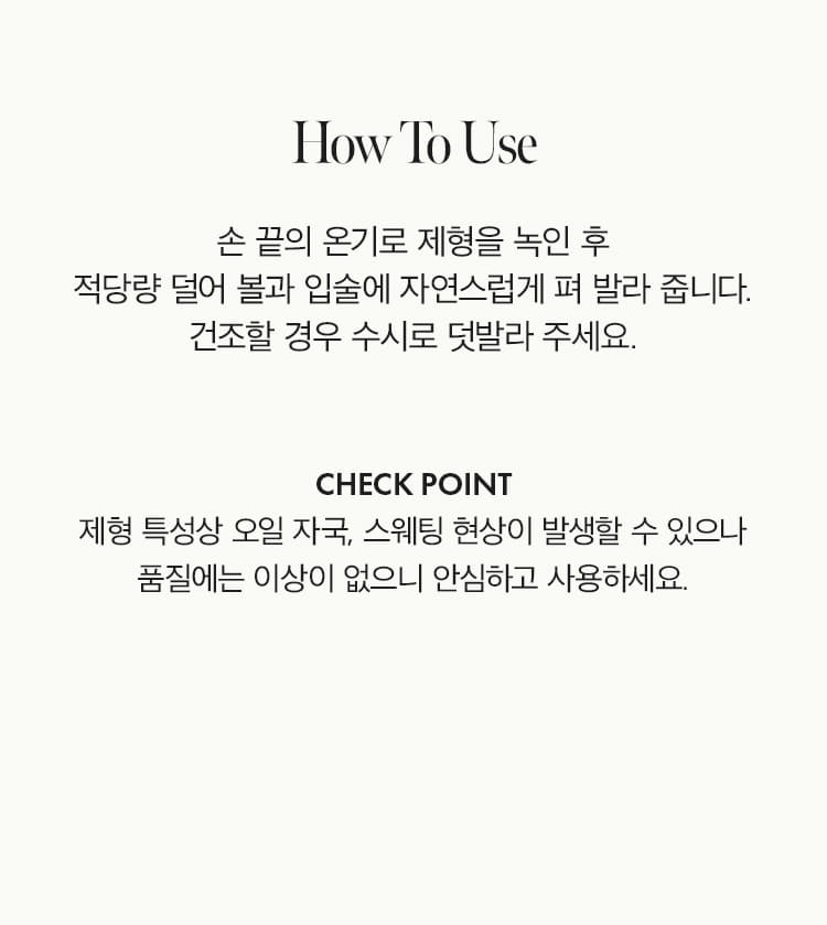 With just a touch, this balm infuses your lips and cheeks with a hint of vitality. A moist, pinkish luminosity seems to rise from beneath the skin, completing a clear, bright, and truly radiant face. Perfect for those who seek a natural, “no-makeup makeup” look that simply enhances their existing beauty.