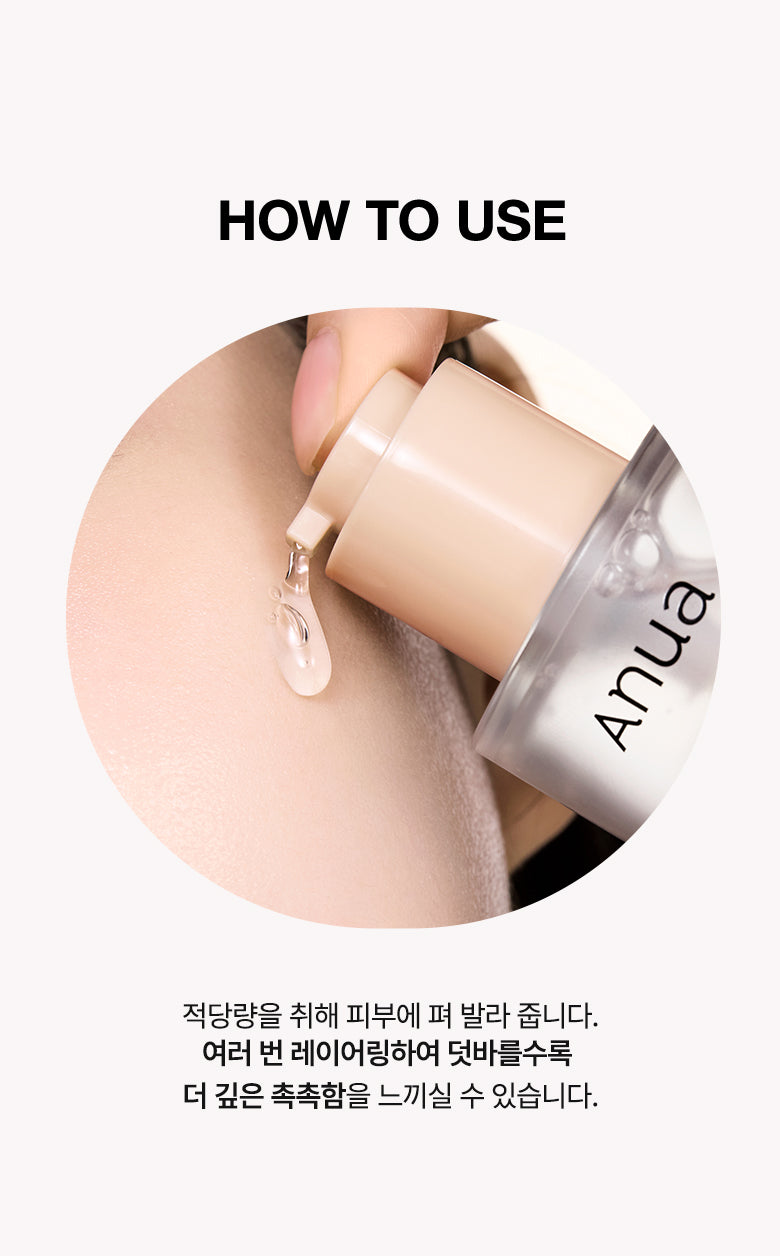 Apply an appropriate amount evenly to the skin. For enhanced hydration, layer the product multiple times to achieve deeper moisture retention.