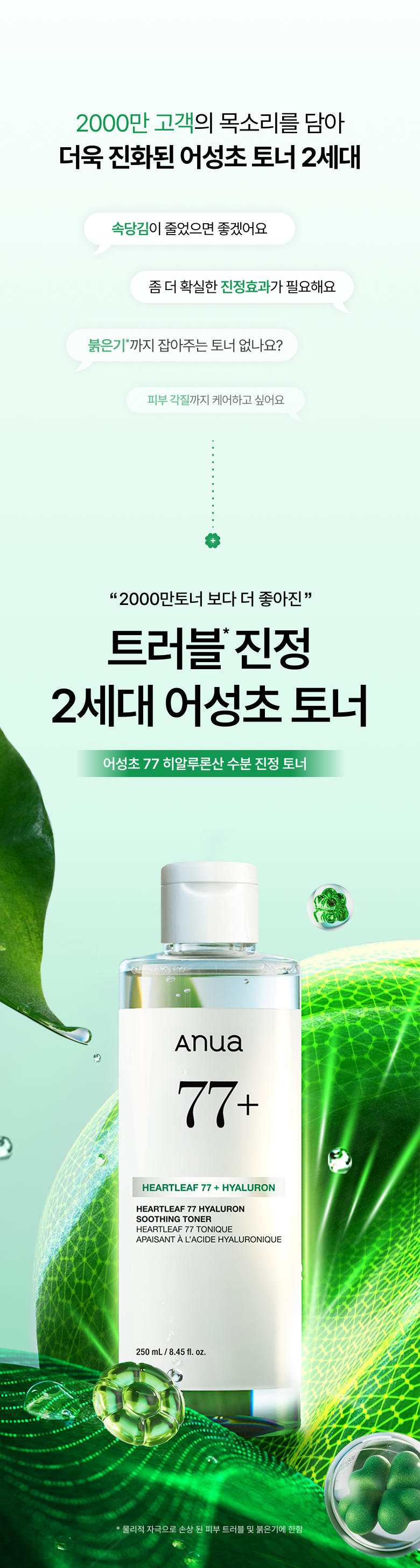 心を穏やかに保つこのトナーは、私の肌を愛している証です。77%ハートリーフが持つ癒し力で赤みが消え、潤いもたっぷり感じられます。