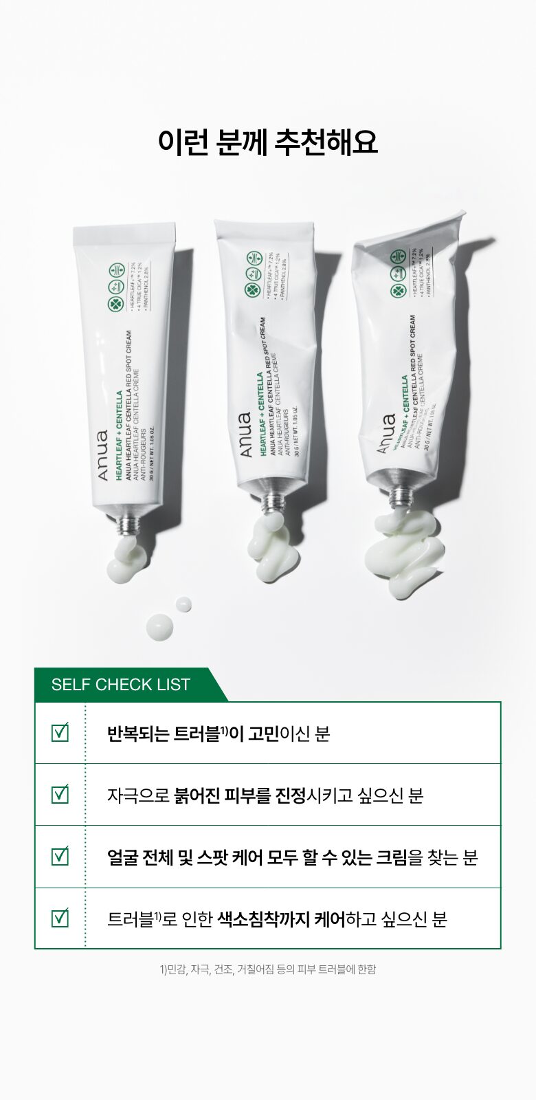 敏感肌で、常に赤みやトラブルが気になっていました。特に梅雨の時期は悪化しやすいので、このクリームを試してみることにしました。ハートリーフエキスとセンテリカの組み合わせには少々疑問でしたが、一晩使用して翌朝、明らかに肌が穏やかさを取り戻した感じがしました!紫外線による色素沈着も気になる私ですが、それにも効果的な成分だとわかった今、期待しています。ニキビ痕も軽減されつつあるので、自信を持てそうです。この商品、本当にオススメですよ。