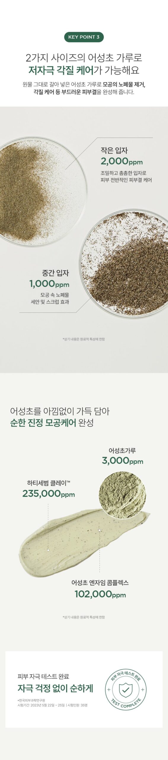 Pore wash without irritation with two sizes of heartleaf powder