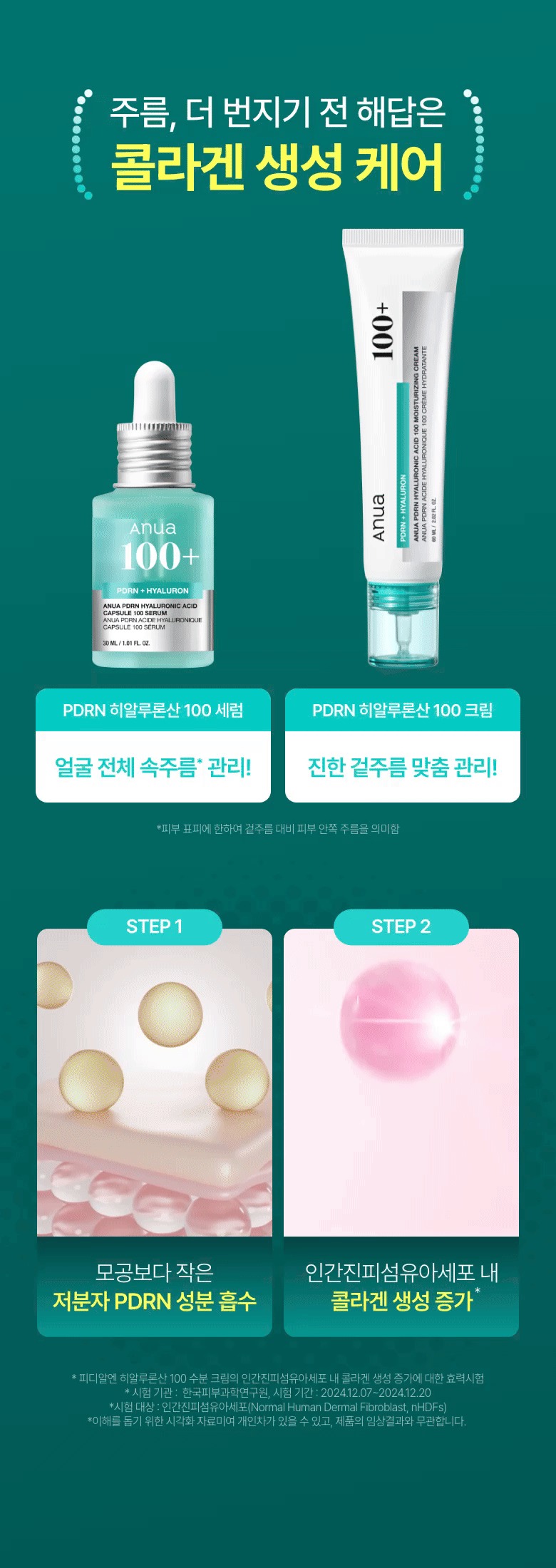 *Efficacy test on increased collagen production in human dermal fibroblasts with PDRN Hyaluronic Acid 100 Skincare 2 types. Test institute: Korea Institute of Dermatological Sciences. Test period: 2024.01.29 ~ 2024.12.29. Test subject: Human Dermal Fibroblasts. This is a visualization for understanding and may vary individually, not directly related to product clinical results.