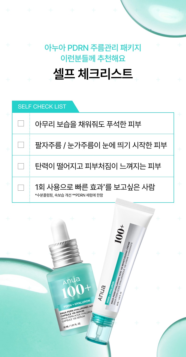 - STEP 1: #Whole_Face_Serum & #Dot_Dot_SerumEvery morning and evening, after cleansing, spread the PDRN Hyaluronic Capsule 100 Serum over your entire face. For targeted care, gently pat an extra layer onto troubled areas (like nasolabial folds, eye wrinkles) at the final step.