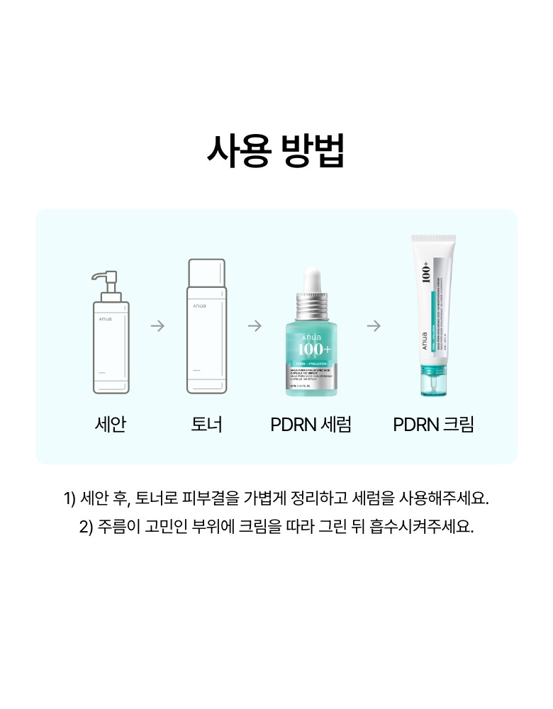 - Step 1: Low-Molecular PDRN Absorption: Our PDRN ingredients are smaller than pores, allowing for deeper and more efficient absorption into the skin.