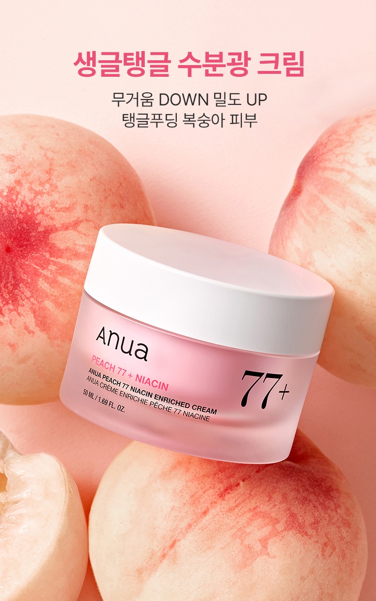 The Anua Peach 77 Niacin Enriched Cream is a dual-functional moisturizer containing 77% Peach Extract for radiant hydration and Niacinamide for brightening and anti-aging benefits. This whipped cream texture melts smoothly into skin, providing all-day moisture and a healthy, luminous glow without any greasy residue.