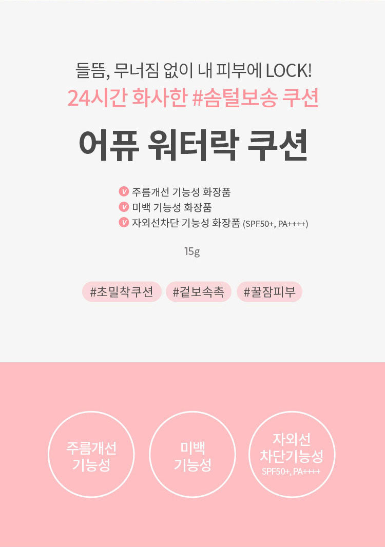 Discover your soft, glowing, and hydrated skin – even after a long day. A’PIEU Water Lock Cushion makes dewy, flawless skin easier than ever.