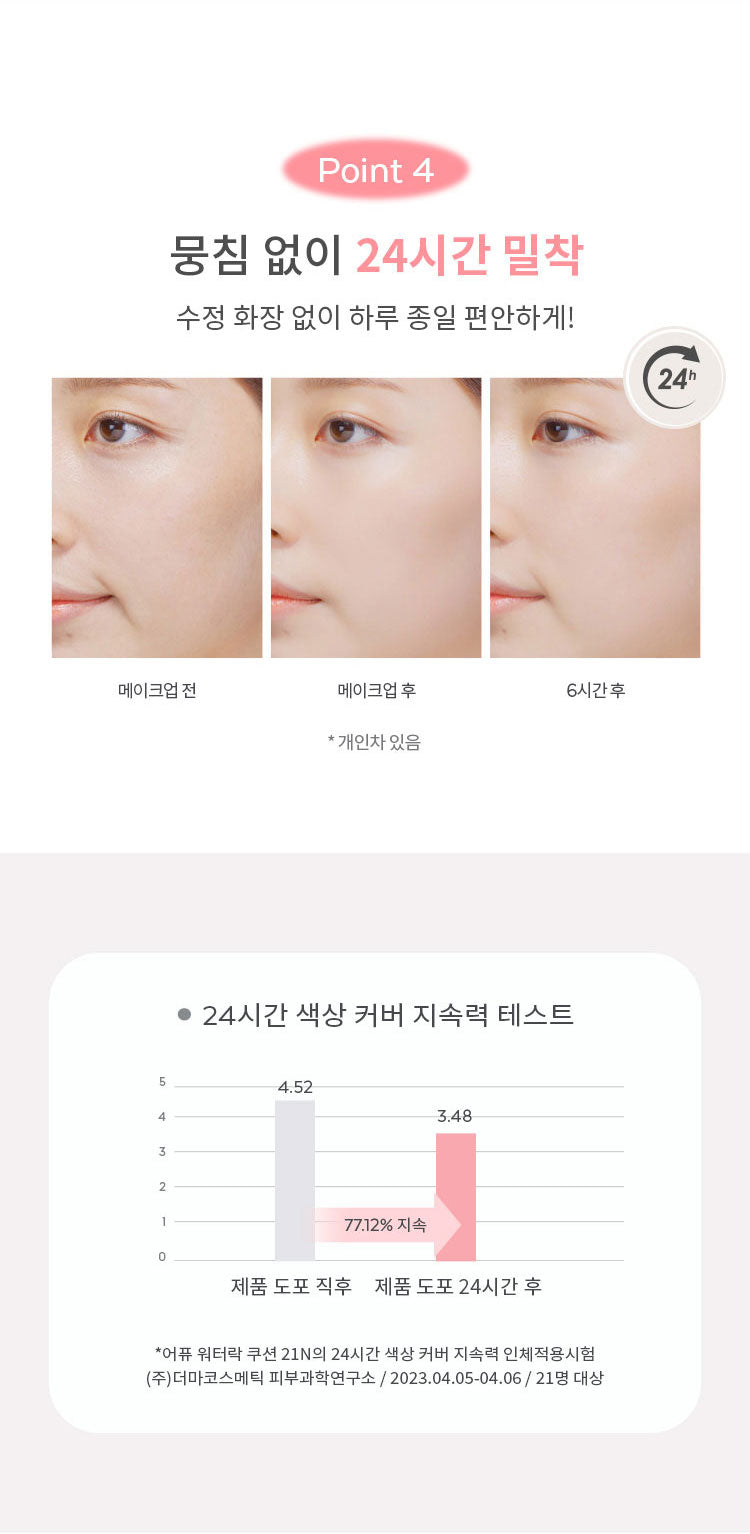 Infused with 60% water-based essence, this cushion deeply hydrates the skin while preventing moisture loss. It soothes and nourishes with every application, leaving skin feeling refreshed and comfortable.