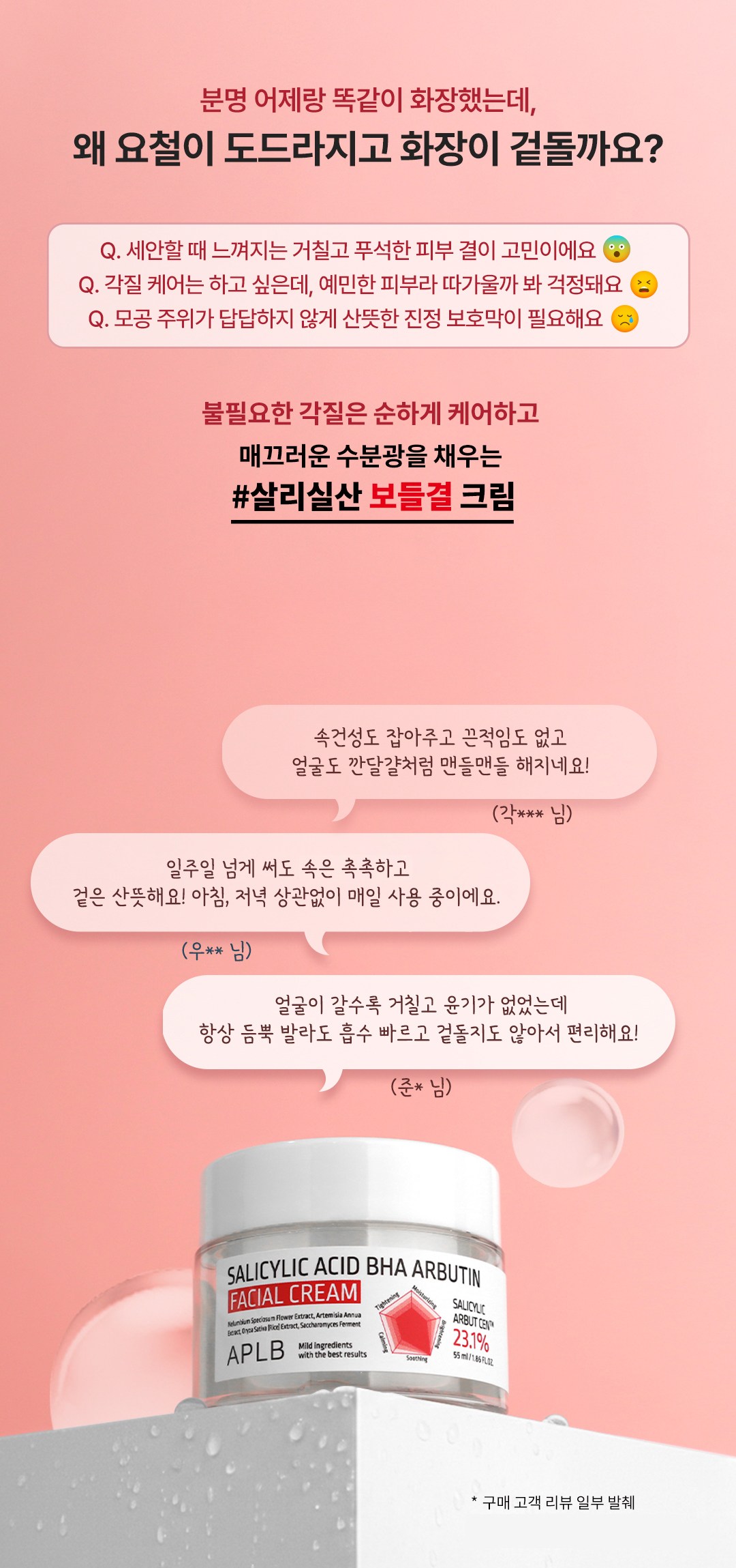 このAPL Salicylic Acid BHA Arbutin Facial Creamは、私のニキビに効果がありました!肌への潤いも強く感じます。デッドスキンをやさしく取り除いて、美しさを実感。