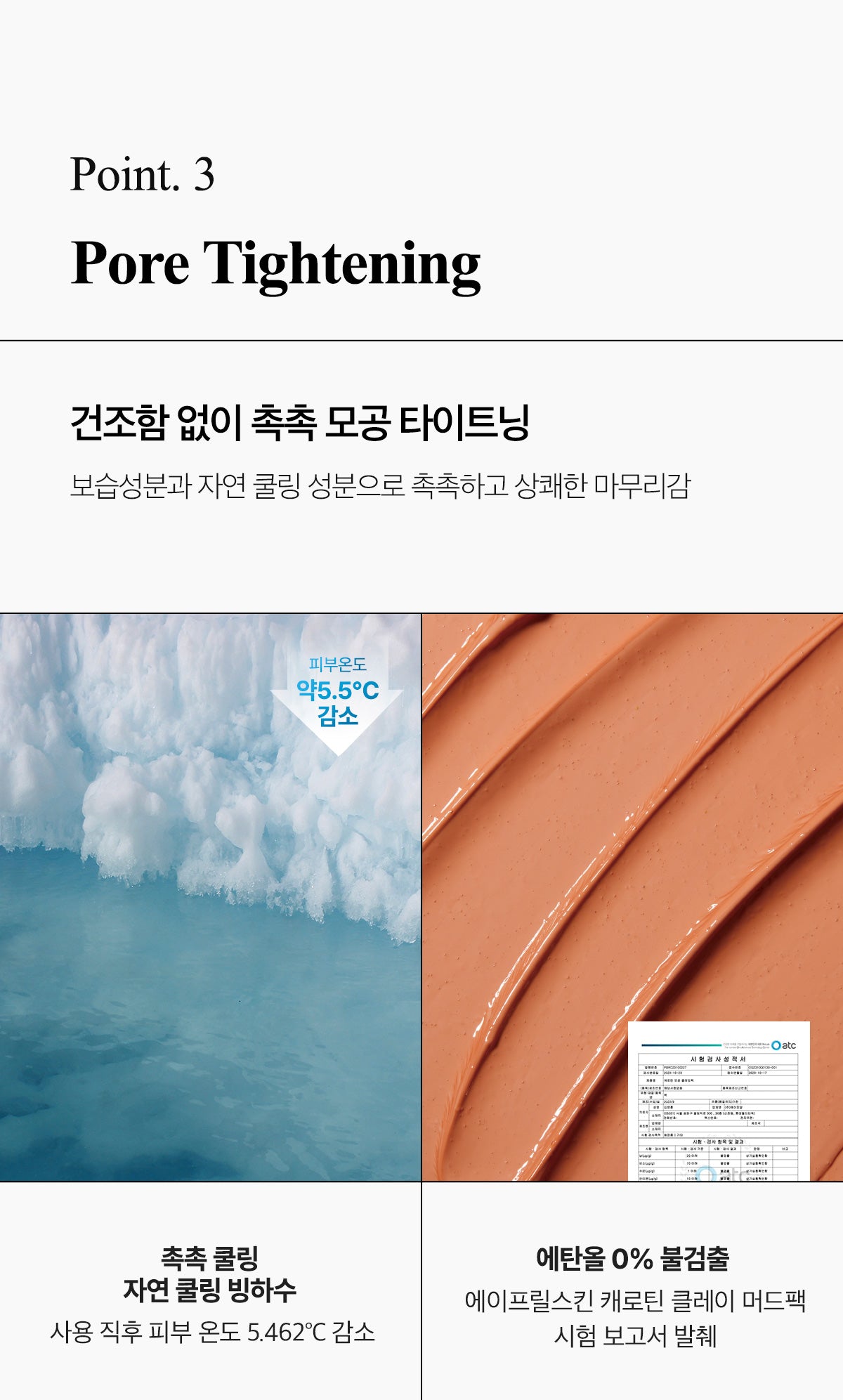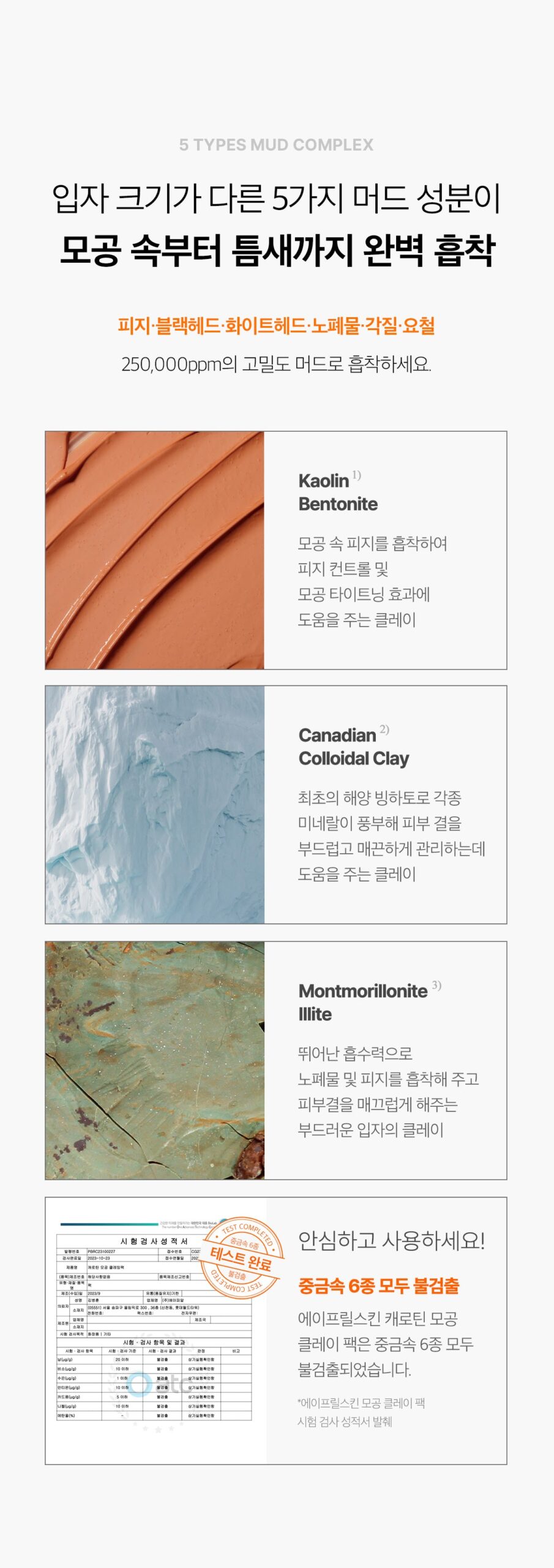 - 5-Type Mud Complex: This includes Kaolin and Bentonite for sebum control and pore tightening, Canadian Colloidal Clay for maintaining skin softness, and Montmorillonite Illite for its waste-absorbing properties.