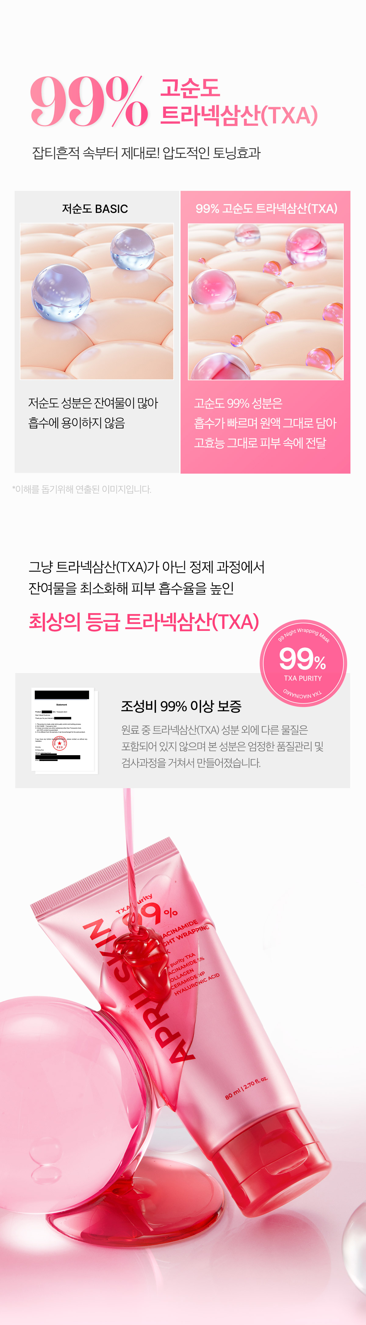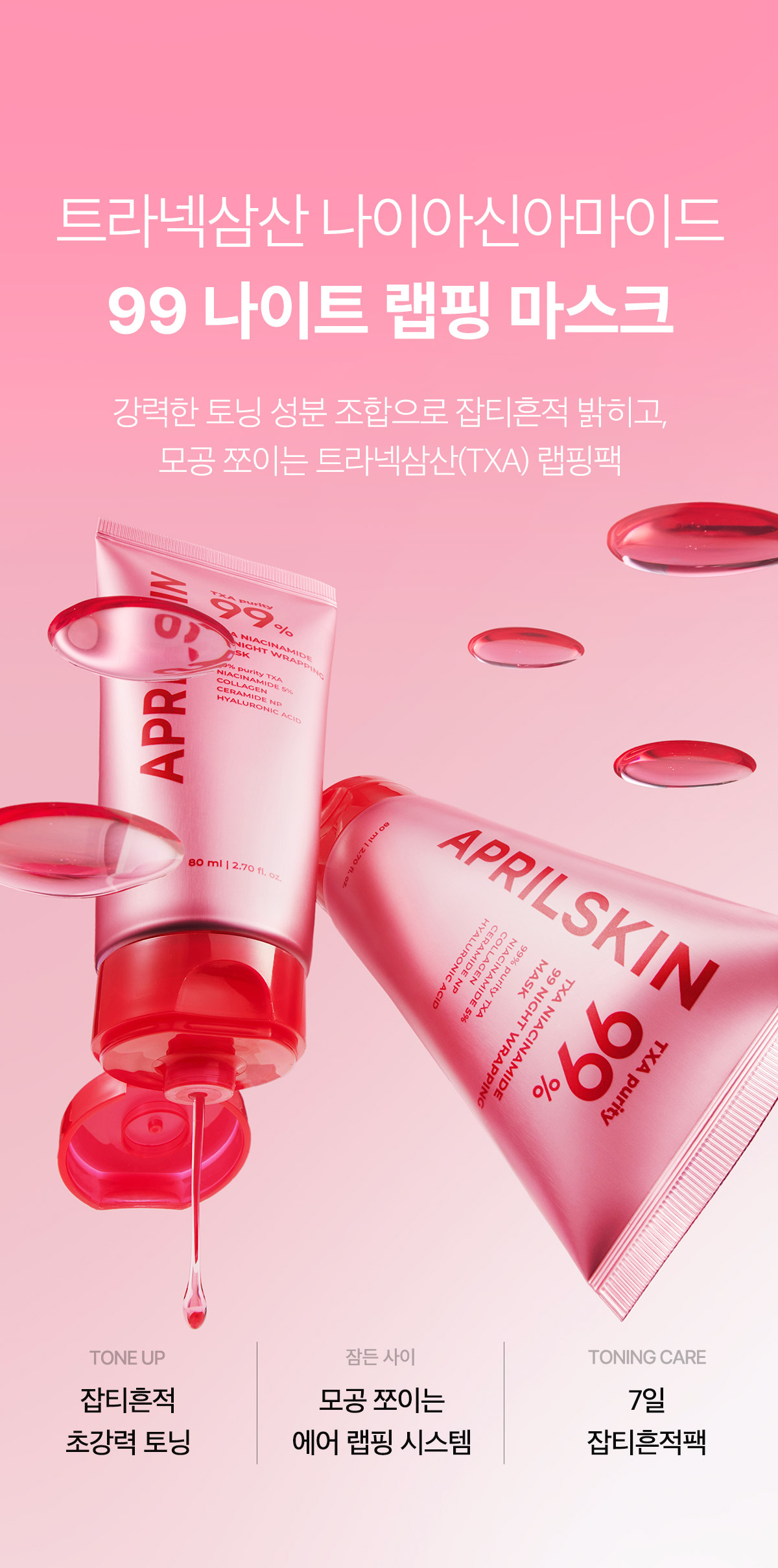 We understand your skin worries. The APRILSKIN TXA Niacinamide 99 Night Wrapping Mask is designed to meet your desires: