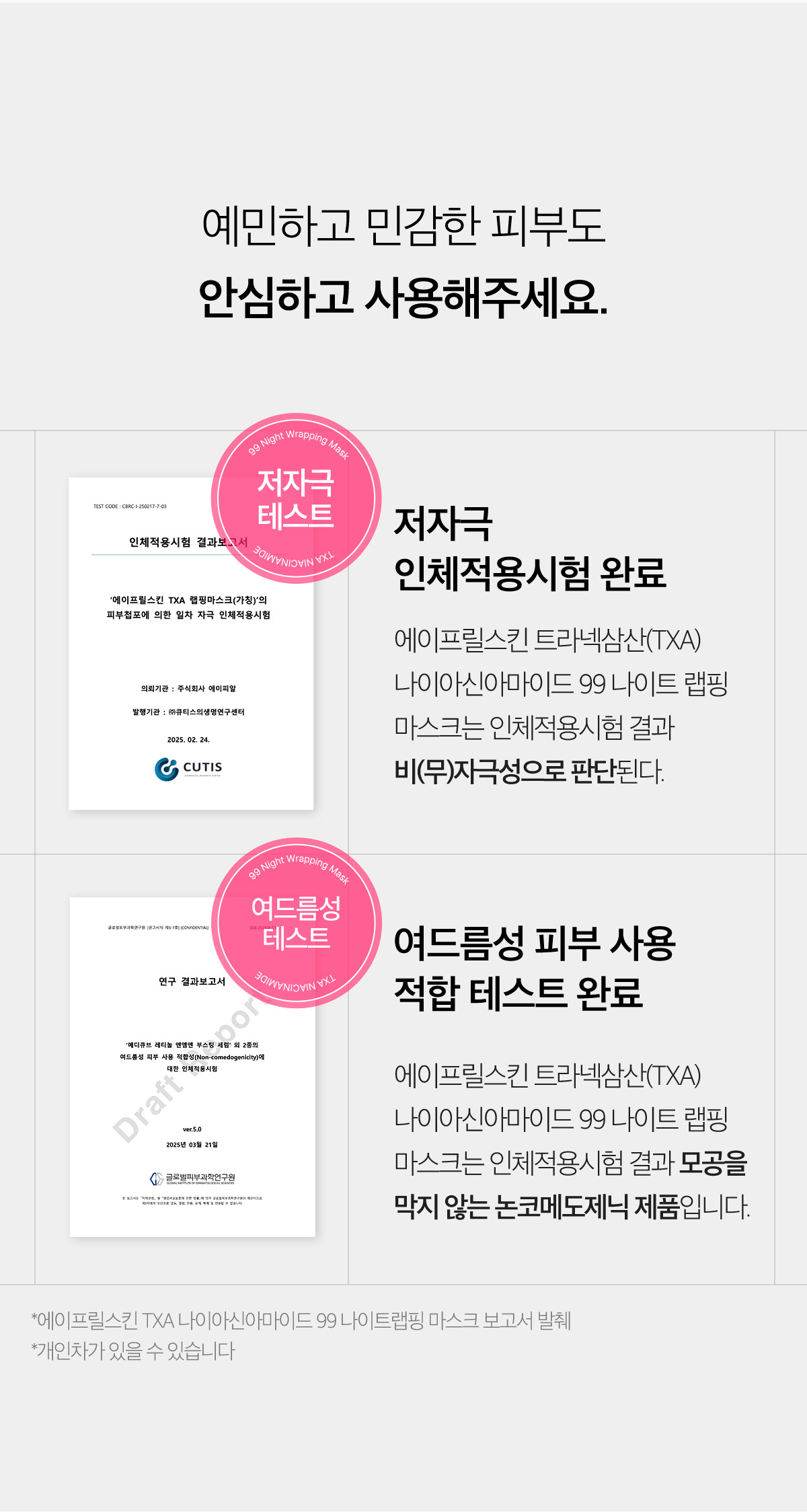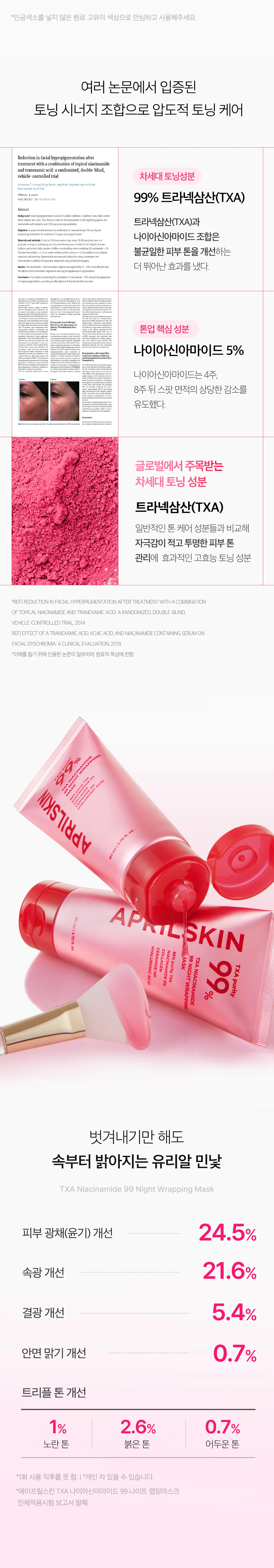 *Individual differences may occur based on immediate use (TXA Niacinamide 99 Night Wrapping Mask).
