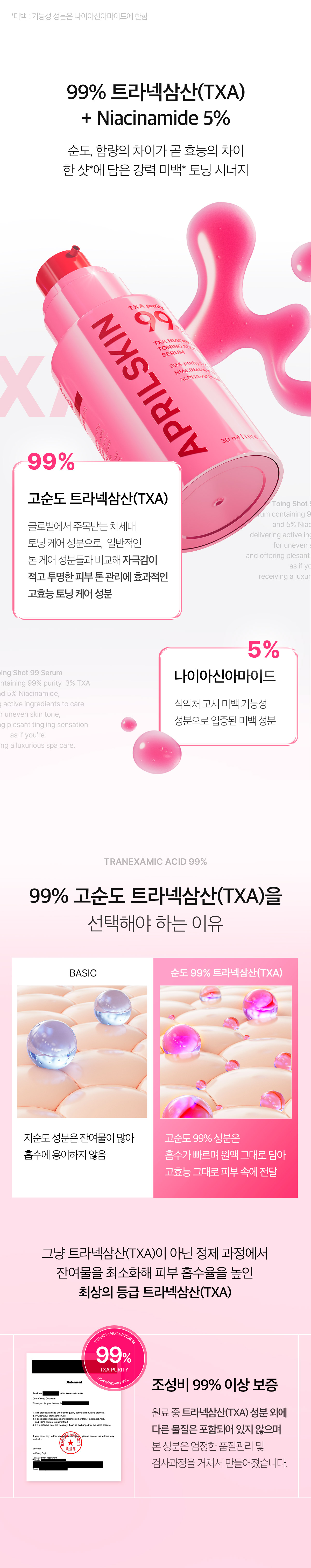 APRILSKIN TXA Niacinamide Toning Shot 99 Serum 30ml – Revolutionary Brightening Spicule Ampoule