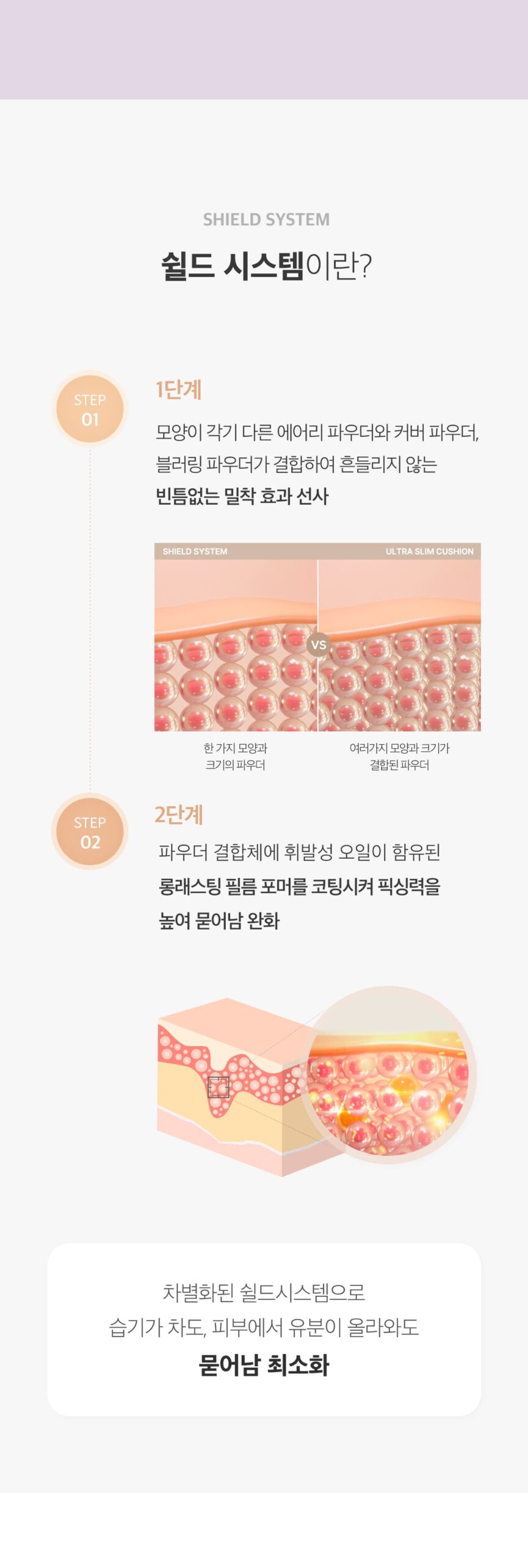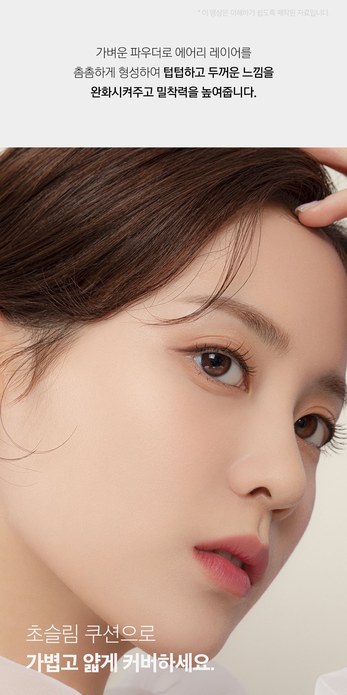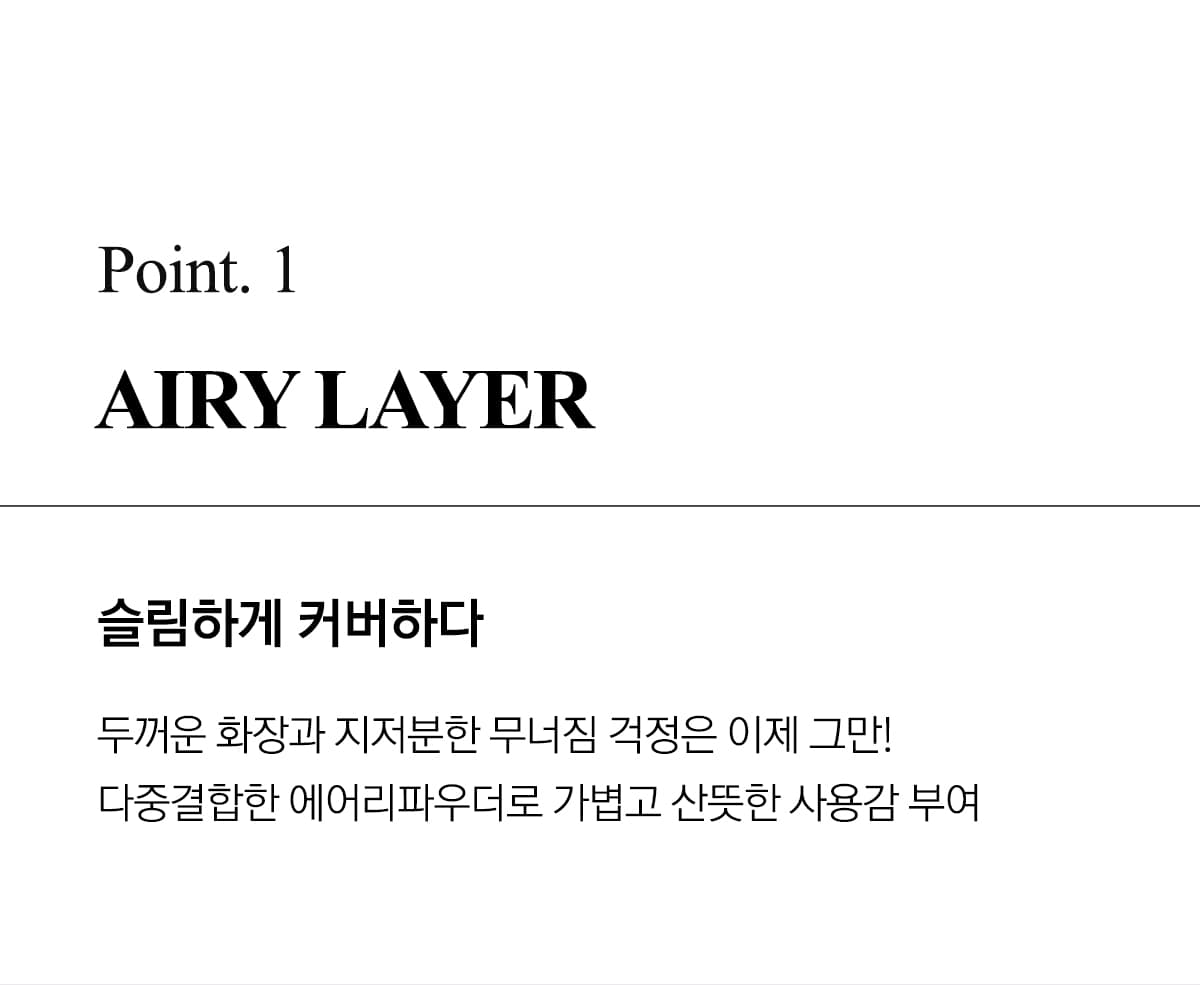 The airy layer is densely formed with a light powder to relieve the thick and stuffy feeling and enhance adhesion.